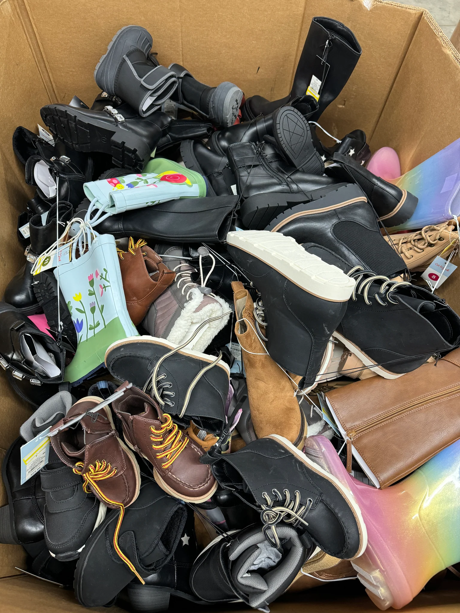 Mixed wholesale Target Kids Boots pallets with boys’ and girls’ sizes. High-quality, durable, and perfect for resellers looking for profitable children’s footwear.